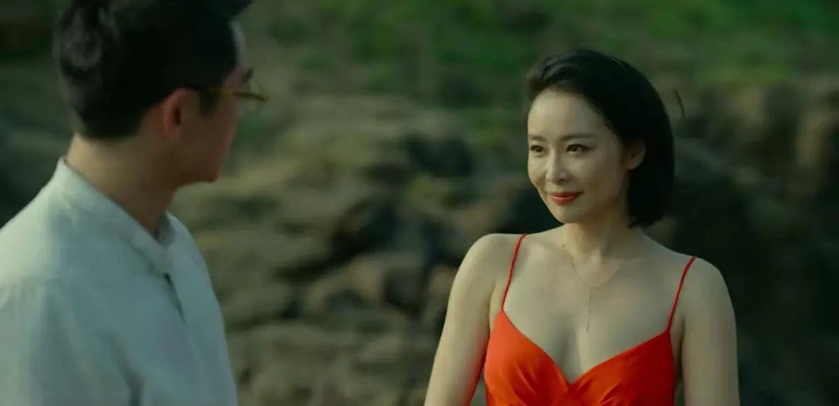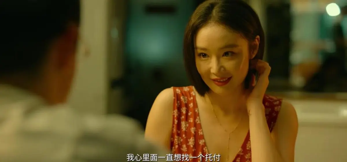 镜头一转,身穿红裙子的短发女人变成了长发,整个人流露出来的气质,也变得完全不同。